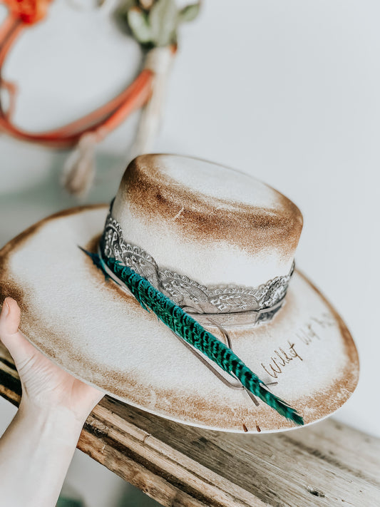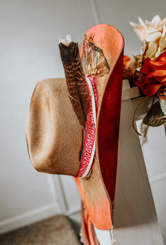 Desert Sun Cowgirl Burned Hat | Handpainted Sunset & Pyrography Hat
