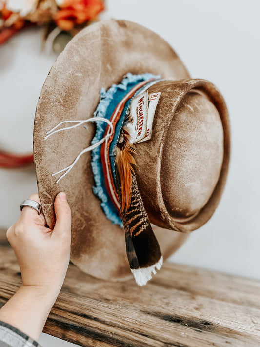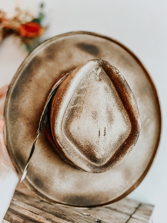 Desert Blaze Burned Fedora | Aztec Band & Feathered Western Hat