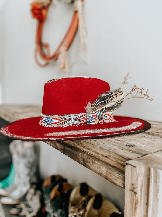 Wild Red Burned Hat | Distressed Hat | Burned Fedora Hat | Vintage Hat