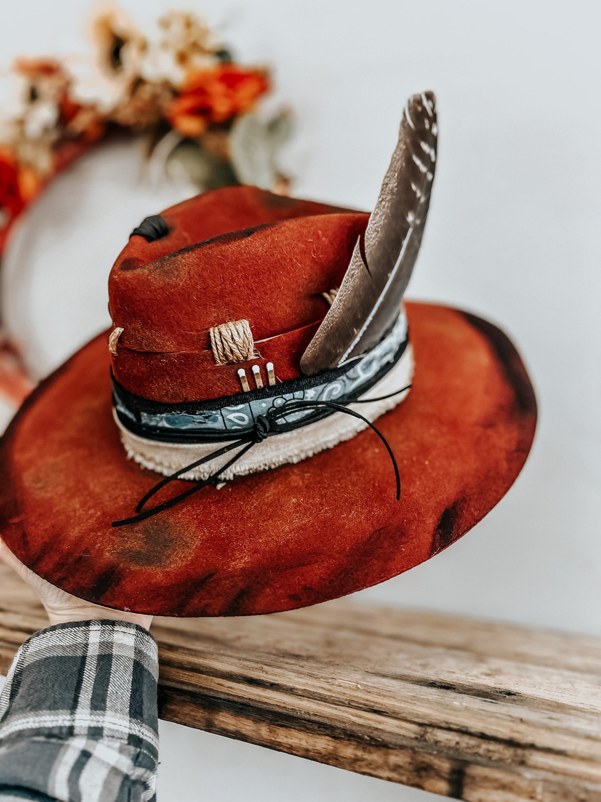 Red Velvet Vintage Hat | Burned Fedora Hat | Western Burned Hat | Vintage Burned Hat | Distressed Hat